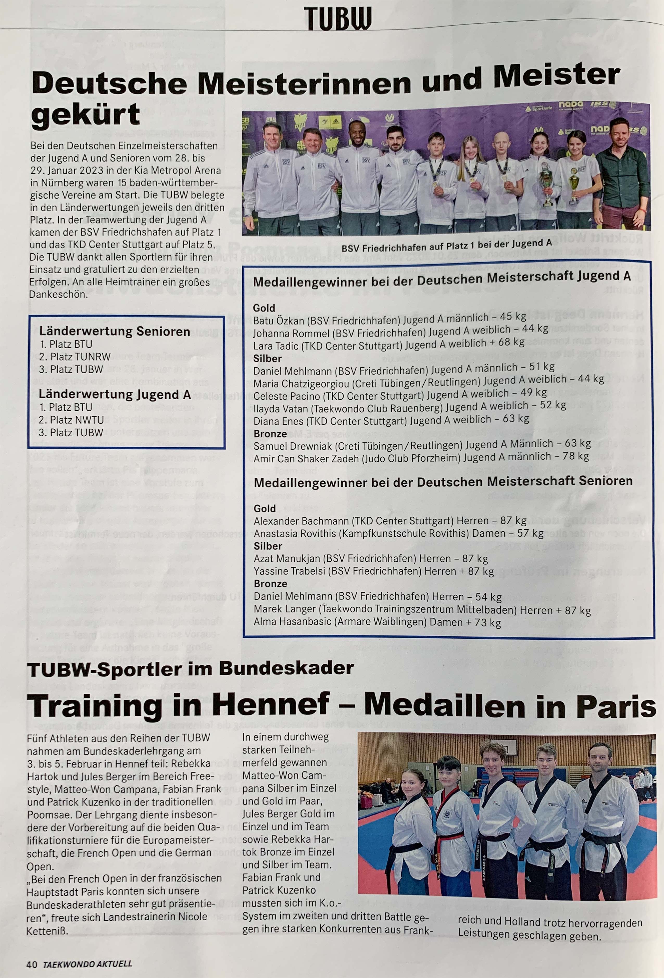 Geschrieben am 28. März 2023. Deutsche Meisterinnen und Meister gekührt Presseartikel-Bild-01: Veröffentlicht in: Taekwondo Aktuell Erscheinungsdatum: 01.03.2023 Zeitung, 2023 Aufrufe: 909 Zurück Weiter